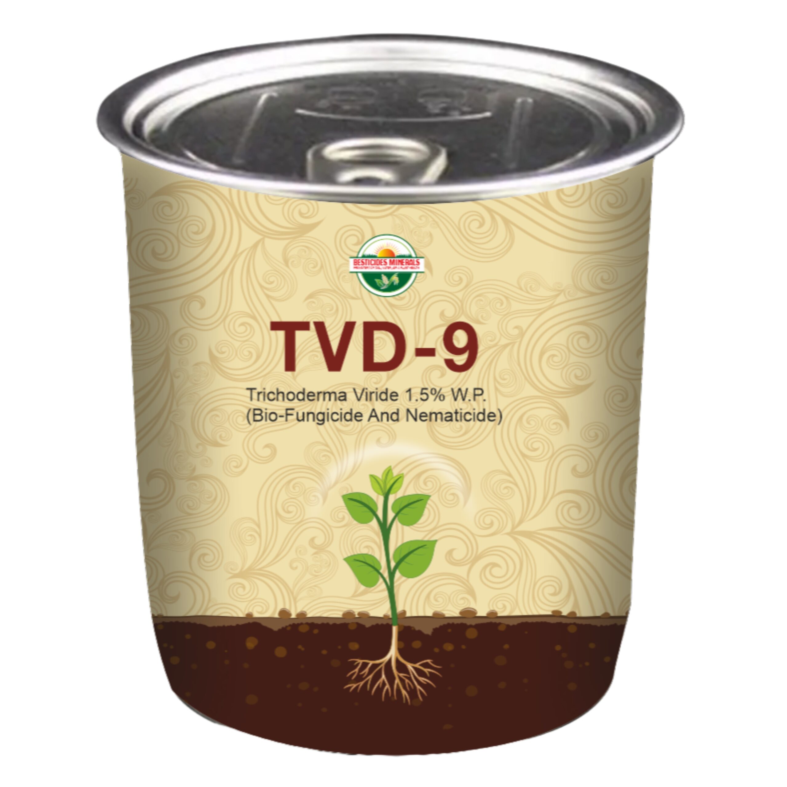 TVD-9 (Soil Application/Foliar Spray/Soil Drenching/Seed Treatment) It is having Trichoderma Viride 1.5% WP. It prevents & control from root knot-nematodes, Fusarium wilt and root rot. DosageandUsage:ForSeedtreatment,mix10gmsofTVD-9 per1 Kg. of seeds.